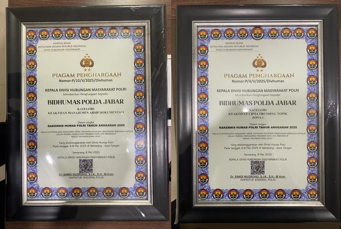 Dalam acara tersebut, Bidhumas Polda Jabar berhasil meraih dua penghargaan bergengsi, yaitu: Piagam Penghargaan Keaktifan Manajemen Arsip Dokumentasi, atas dedikasi dalam pengelolaan dan pendokumentasian kegiatan kehumasan secara tertib, rapi, dan sistematis serta Piagam Penghargaan Keaktifan Cipta Trending Topic Zona I, sebagai apresiasi atas keaktifan dalam mengangkat isu-isu positif institusi Polri ke ruang publik digital dan media sosial, khususnya di wilayah Zona I.