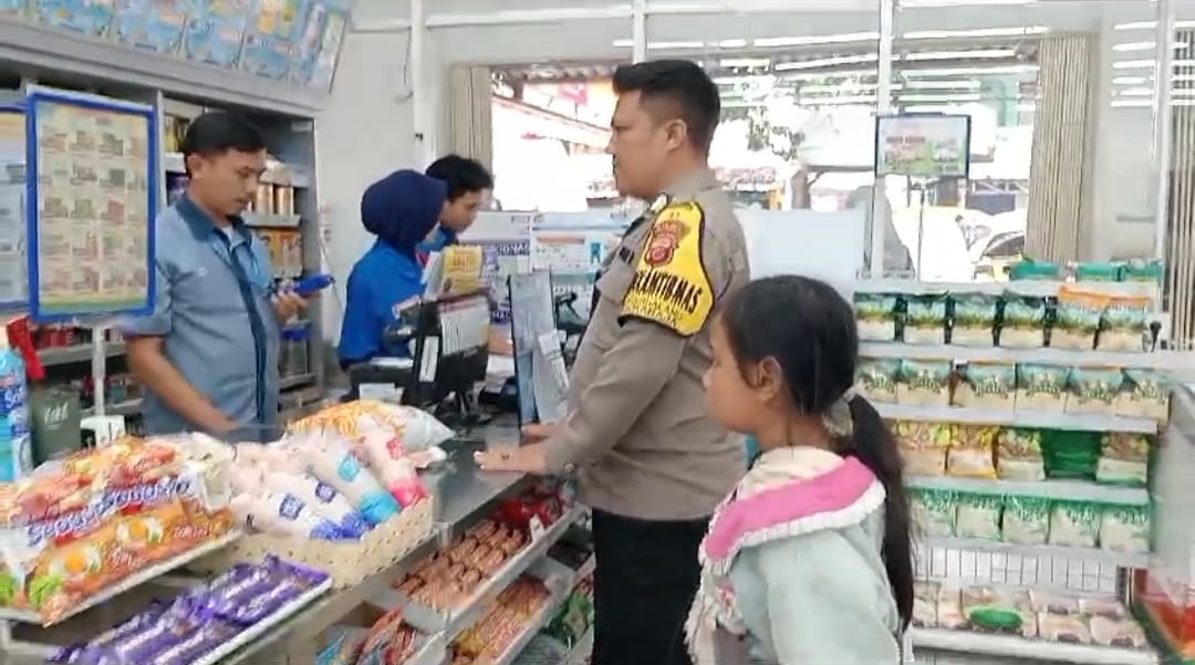 Seperti halnya yang dilakukan Bripka Asep Hendra, Babinkamtibmas Pasirhalang Polsek Sukaraja Polres Sukabumi Kota saat sedang mampir ke salah satu minimarket dan melihat seorang anak perempuan pengamen yang duduk berteduh di teras minimarket tersebut, Rabu (24/01/2024).