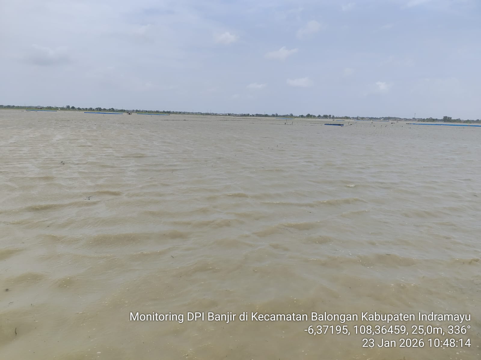 Dilaporkan dari 10 desa yang berada di kecamatan Balongan hampir seluruhnya lahan sawah yang siap tanam mengalami banjir yang di sebabkan intensitas curah hujan yang masih tinggi.