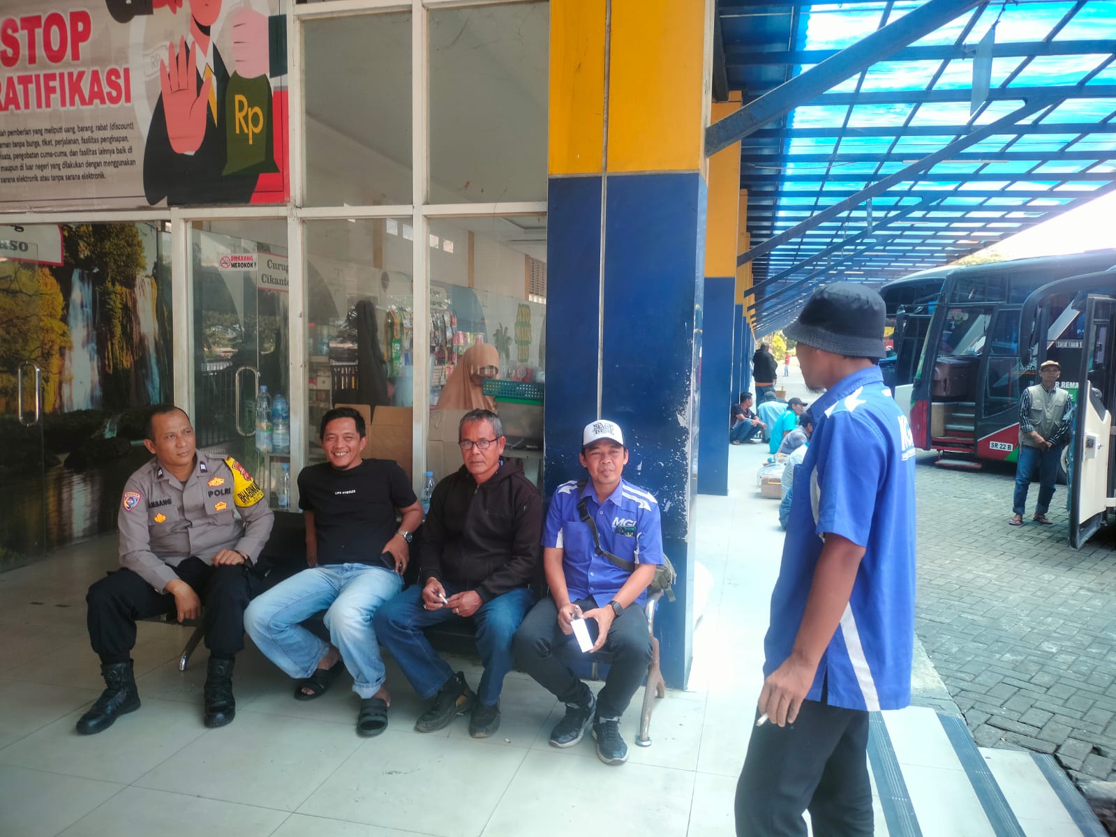 Seperti biasa rutinitas Bhabinkamtibmas Sudajayahilir Aiptu RD, Bambang Irawan, S.Sos sambangi P.O Bus AKDP terminal KH. Ahmad Sanusi serukan kenyamanan dan Kondusifitas bagi calon penumpang