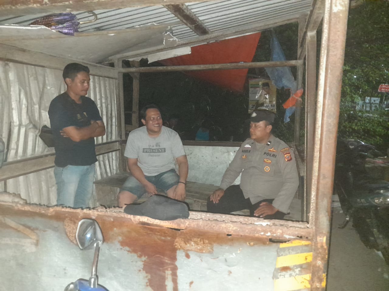 Karawang, Jabar – Bhabinkamtibmas Polsek Pangkalan Polres Karawang Aipda Agus Rahmat ngawangkong bersama warga Kampung Geredeg RT 005/002 Desa Kertasari, Kecamatan Pangkalan, Kabupaten Karawang, Jumat dini hari (26/1/2024).