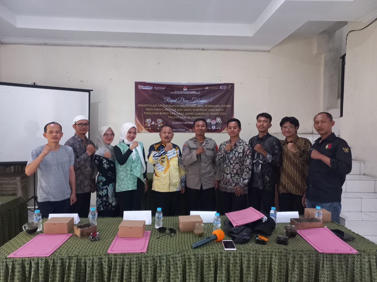 Kota Sukabumi – Bhabinkamtibmas Polsek Sukaraja Polres Sukabumi Kota menghadiri acara rapat pleno terbuka Rekapitulasi Daftar Pemilih Hasil Pemutakhiran (DPSHP) beberapa minggu yang lalu, Panitia kembali menggelar rapat pleno terbuka dengan melakukan DPS dan penyusunan Rekapitulasi Daftar Pemilih Sementara Hasil Perbaikan (DPSHP) di Aula Desa Selawangi Kecamatan Sukaraja Kabupaten Sukabumi. Sabtu (07/09/2024).