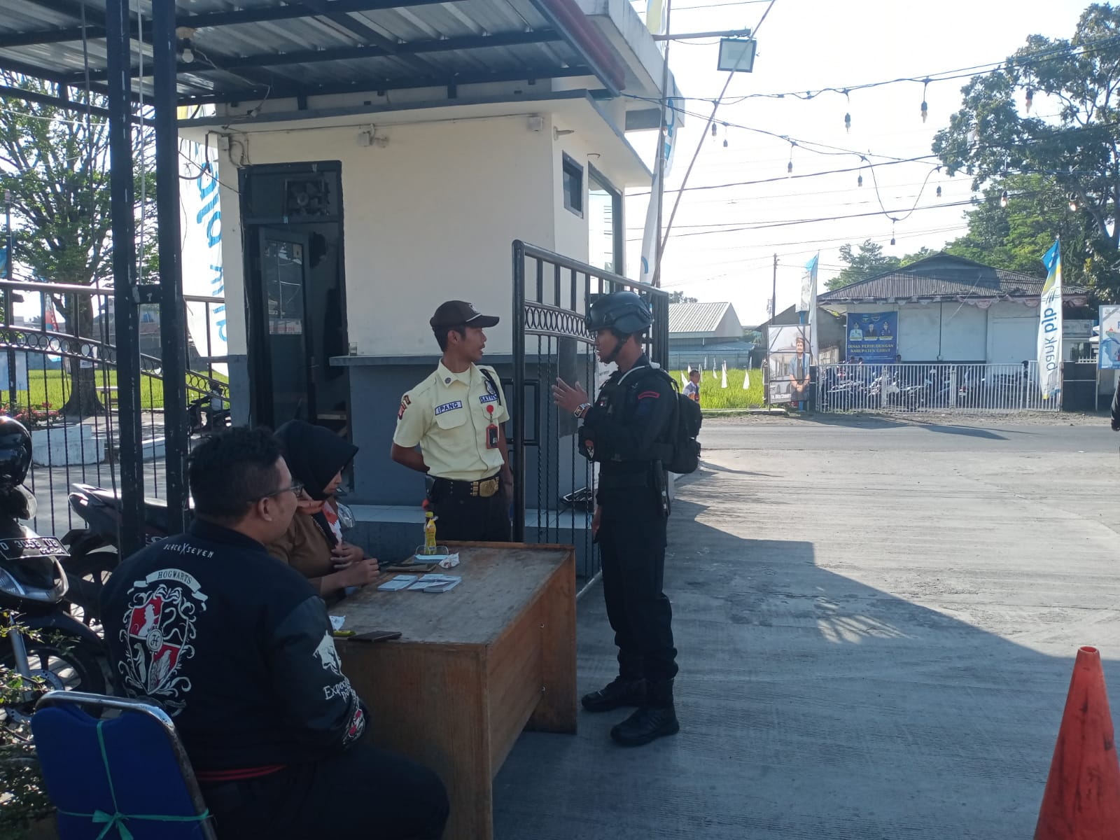 Bripda Raja anggota Kompi 1 Batalyon D Pelopor Satbrimob Polda Jabar melaksanakan kegiatan Patroli Harkamtibmas ke SOR Ciateul dan berdialog dengan personil Security untuk selalu mewaspadai adanya gangguan Kamtibmas yang saat ini kasusnya terus meningkat akibat situasi global yang memaksa mereka melakukan tindakan melawan hukum ditambah dengan selalu peka dan responsif saat bertugas.