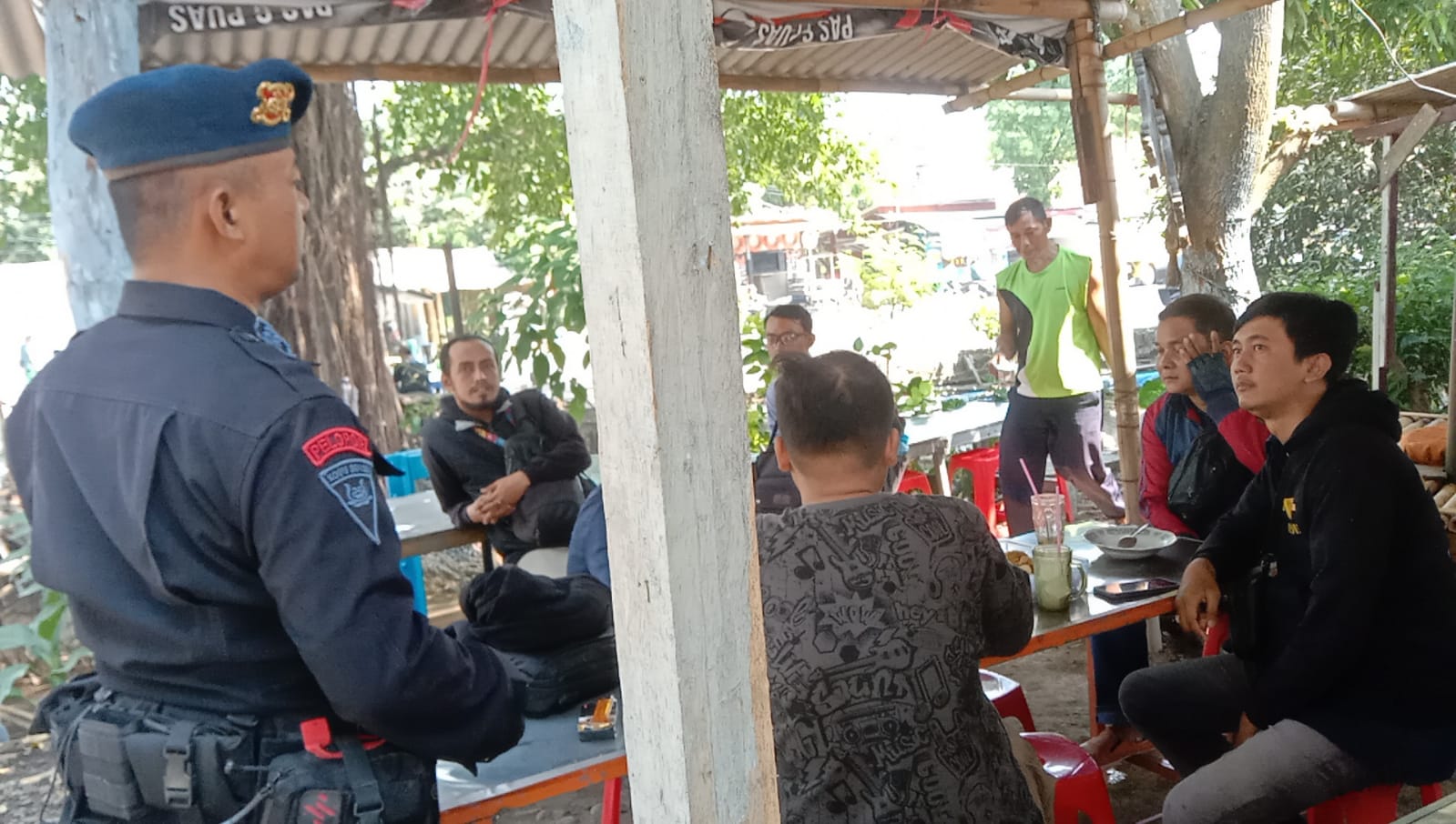 Cirebon, Faktaperistiwanews.co.id – Anggota brimob Aiptu Agung mengimbau kepada warga Desa Kemantren Kecamatan Talun Kab Cirebon yang sedang berkumpul terkait dengan cara menjaga situasi harkamtibmas yang aman dan nyaman serta cara pencegahan tindak kriminalitas yang akan terjadi di wilayah sekitar.