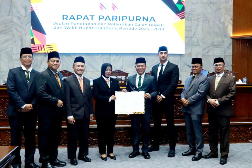 Sementara itu, Rapat Paripurna dengan agenda Usulan Penetapan dan Pelantikan Calon Bupati dan Wakil Bupati Bandung periode 2025- 2030 di Gedung Paripurna, DPRD Kabupaten Bandung, Soreang, Rabu (5/2/2025) dipimpin Ketua DPRD Kabupaten Bandung Renie Rahayu Fauzi, didampingi Wakil Ketua 1 Firman B. Sumantri, Wakil Ketua II Thony Fathony Muhammad, dan Wakil Ketua III M. Akhiri Hailuki.