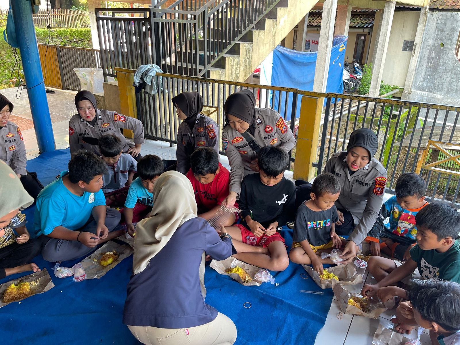 Tim Trauma Healing Polwan Polres Subang Polda Jabar juga memberikan Semangat berupa motivasi dan Hiburan kepada Ibu-ibu Korban Bencana Alam Tanah Longsor untuk menghilangkan rasa Trauma mereka.