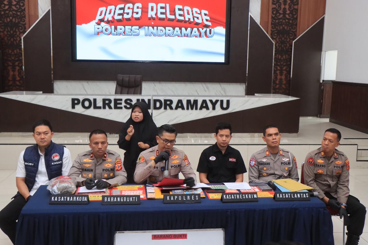 Melalui konferensi pers yang digelar di Aula Atmaniwedhana, Kapolres Indramayu AKBP Mochamad Fajar Gemilang memaparkan hasil signifikan dari rangkaian operasi kepolisian yang dilaksanakan guna menciptakan situasi Kamtibmas yang kondusif selama bulan Ramadhan dan menjelang Hari Raya Idul Fitri 1447 H, Kamis siang (12/3/2026).