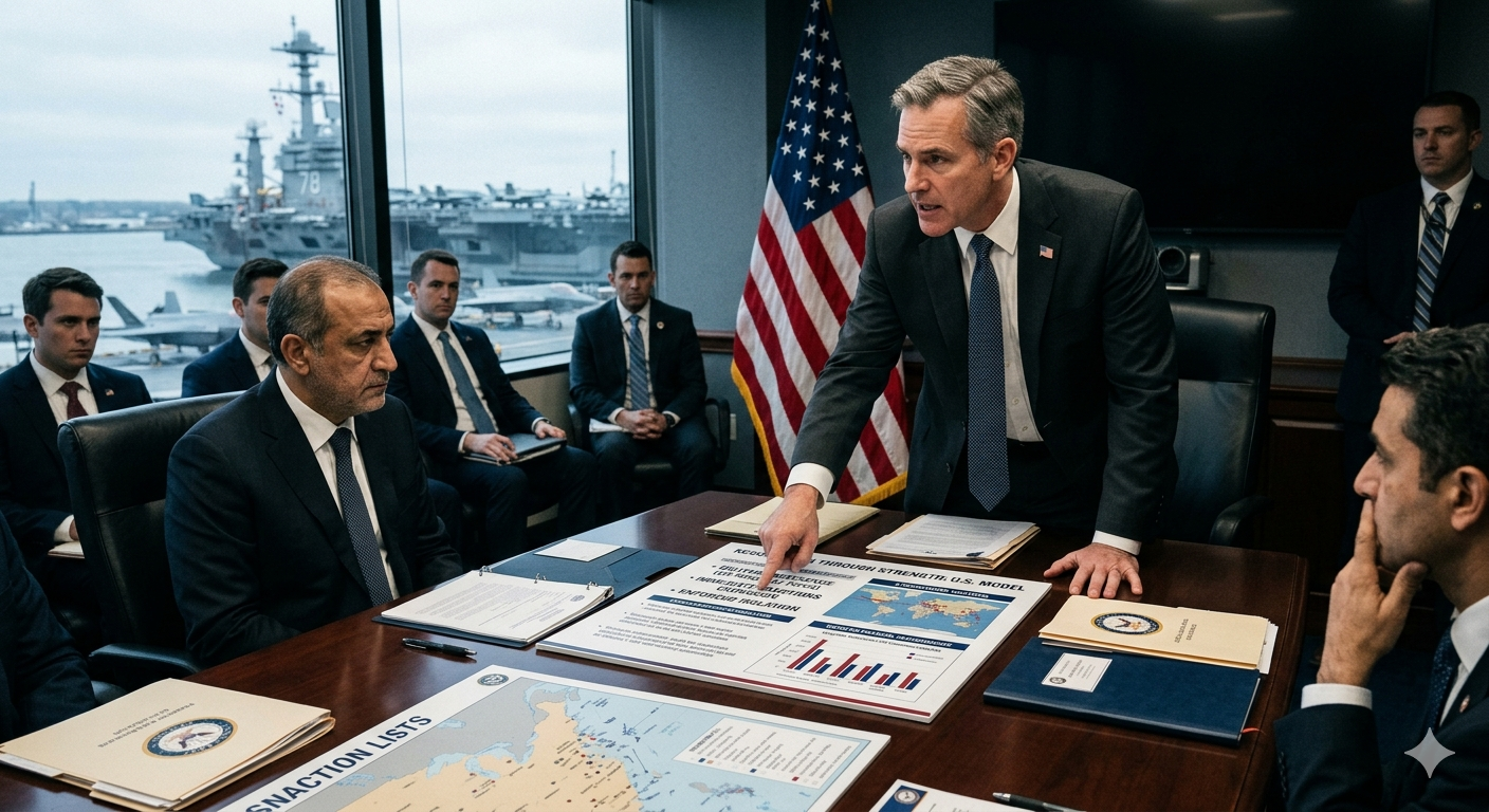 FAKTAPERISTIWANEWS.CO.ID – Dalam dinamika politik internasional modern, negosiasi tidak lagi semata-mata dilakukan melalui meja diplomasi yang tenang dan penuh kompromi. Dalam banyak kasus, Amerika Serikat mengembangkan pola negosiasi yang bertumpu pada dua instrumen utama, yaitu ancaman kekuatan militer dan pengetatan sanksi ekonomi, sebagai alat untuk menekan lawan agar menerima kepentingan strategis yang diinginkan. Model ini menunjukkan bahwa diplomasi tidak selalu berjalan melalui persuasi, tetapi juga melalui tekanan yang terukur.