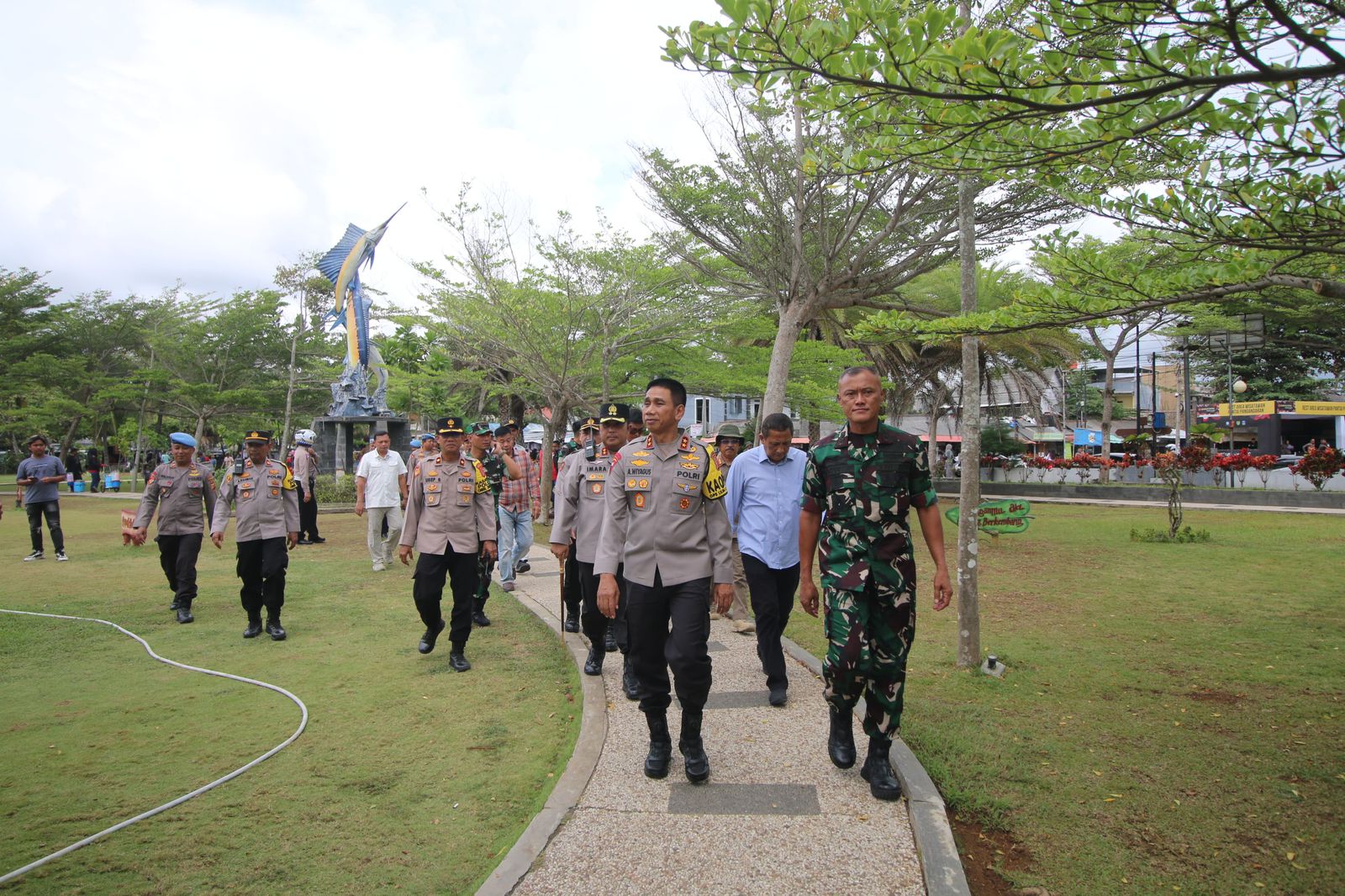 Kapolda Jabar Irjen. Pol. Dr. Akhmad Wiyagus, S.I.K., M.Si., M.M beserta Pangdam III Siliwangi Mayjen TNI Erwin Djatnik, S.Sos. melaksanakan pengecekan Objek Wisata Pantai Pangandaran dalam rangka Ops Lilin Lodaya 2023 di dampingi oleh Kapolres Pangandaran AKBP Imara Utama S.I.K., .M.H serta Dandim 0625 Pangandaran Letkol Inf Indra Mardianto Subroto M.Ip. di Kabupaten Pangandaran, Minggu (31/12/2023).
