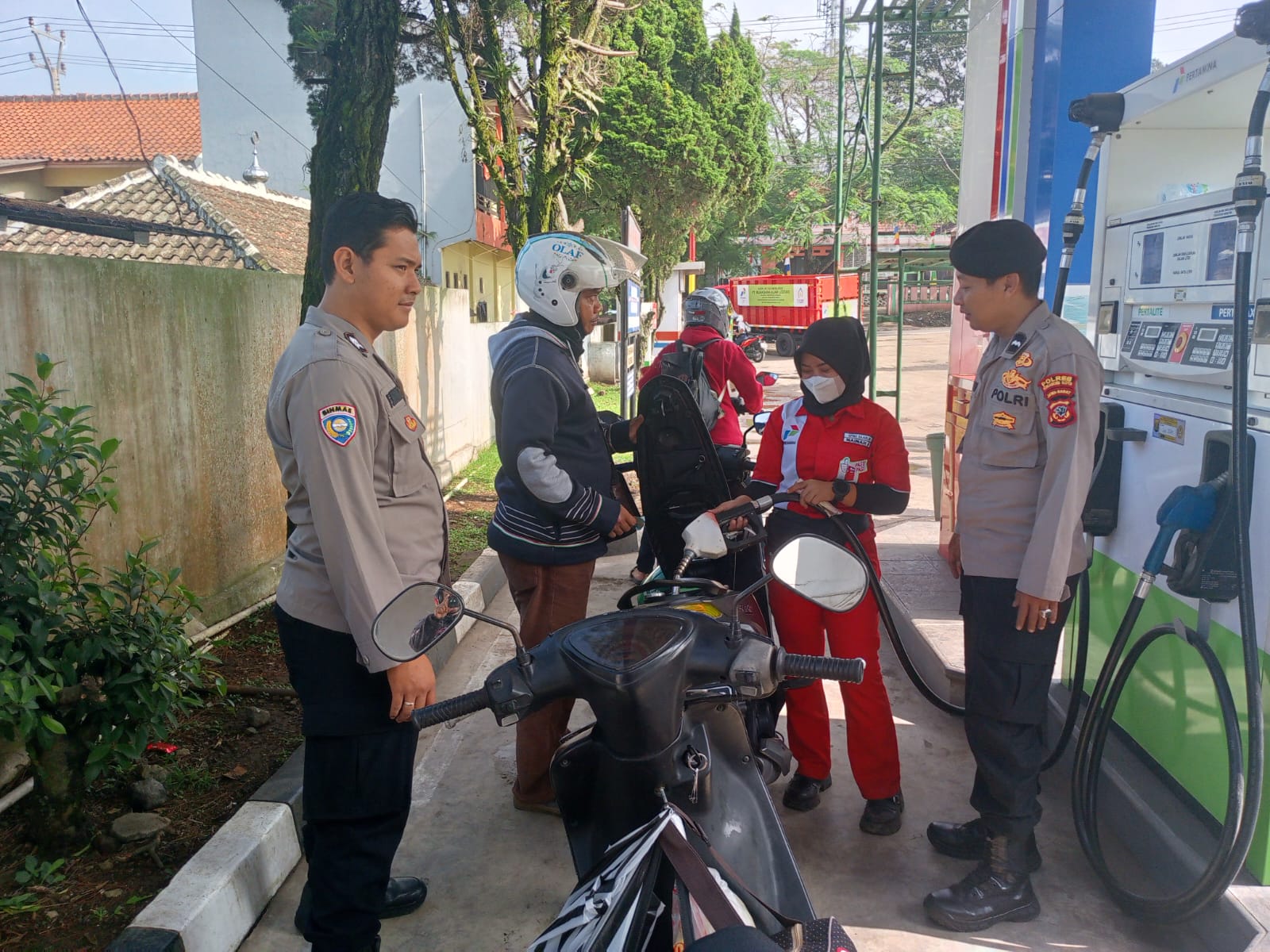 SUKABUMI — Polsek Sukalarang — polres Sukabumi Kota, Patroli Dialogis Siang dengan Karyawan Antisipasi Gangguan Kamtibmas Di SPBU Sambil Sampaikan Himbauan Kepada Warga Yang Sedang Mengisi BBM, Pada Selasa, ( 09 Juli 2024 ) Siang.