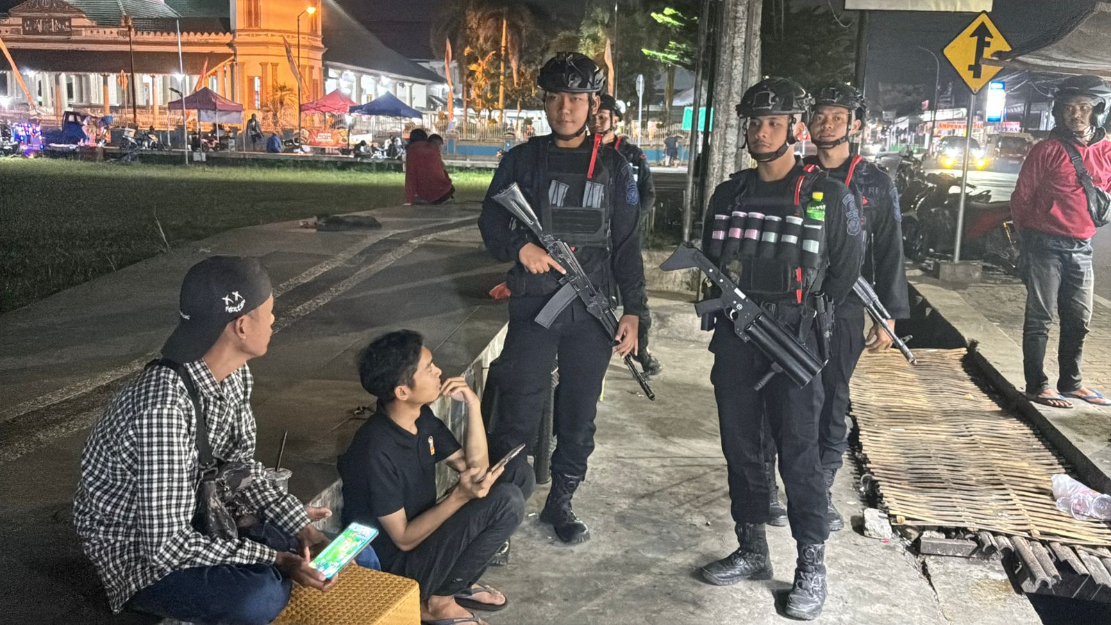 Patroli kemudian dilanjutkan pada pukul 22.00 WIB menuju kawasan Alun-Alun Manonjaya yang menjadi pusat aktivitas masyarakat pada malam hari. Di lokasi ini, anggota Brimob tidak hanya melakukan pemantauan, tetapi juga berdialog secara langsung dengan masyarakat. Pendekatan dialogis ini dilakukan untuk menyerap informasi sekaligus memberikan rasa aman dan nyaman kepada warga.