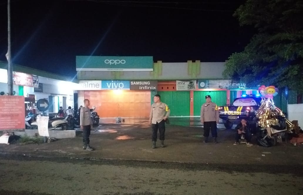 Karawang, Jabar – Anggota patroli prekat Polsek Batujaya Polres Karawang Polda Jabar melaksanakan antisipasi C3 dan gangguan kamtibmas di Ruko Centro Batujaya, Kabupaten Karawang, Senin dini hari (1/1/2024).