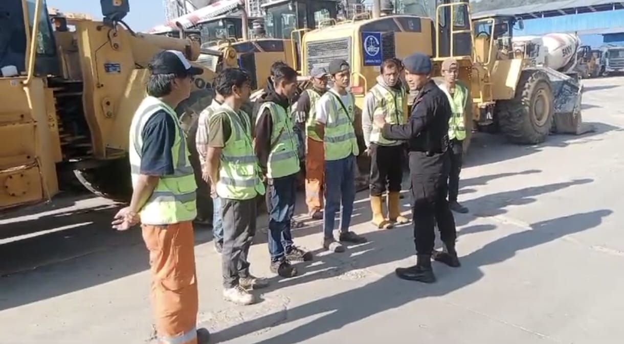Briptu Asep Yanyan sebagai anggota pengamanan proyek KCIC memberikan arahan atau himbauan mengenai SOP keamanan dalam bekerja kepada pekerja proyek KCIC agar selalu berhati-hati saat melaksanakan pekerjaan.