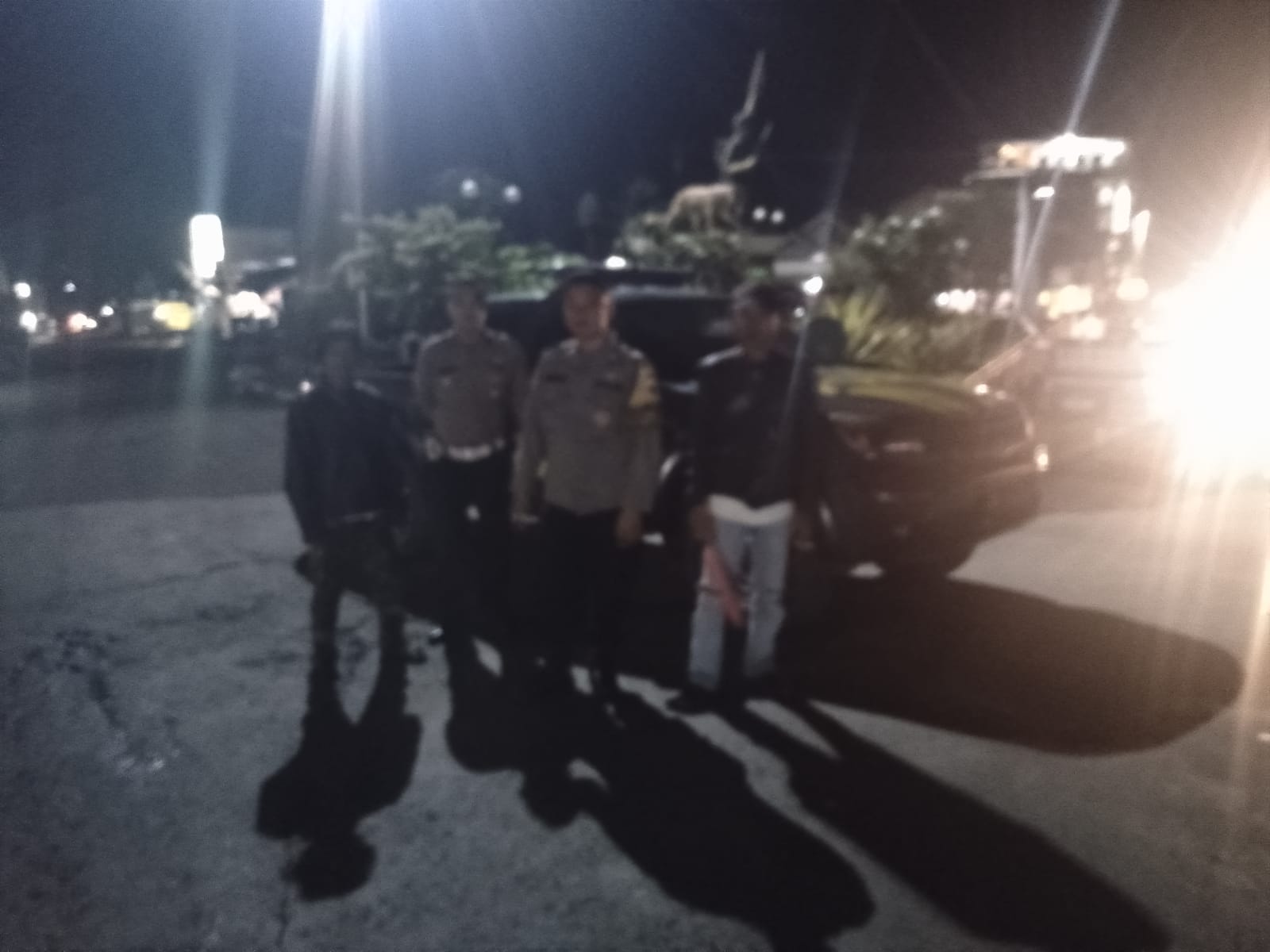 Anggota Samapta Polsek Sukalarang Aipda AA Kurniawan bersama Briptu Firwa melaksanakan Patroli strong point malam hari di jalan _ jalan yang sepi yang jauh dari pemukiman rumah penduduk dan jalan_ jalan yang gelap karena minimnya penerangan jalan.
