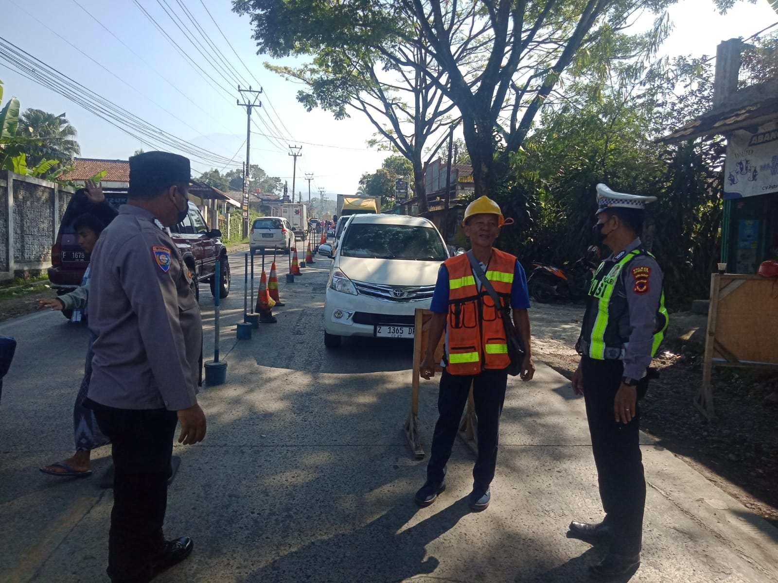 Kegiatan pengamanan dan pengaturan lalu lintas oleh petugas Polsek Sukalarang saat ada perbaikan jalan bertjuan untuk menjaga kelancaran arus lalu lintas di ruas jalan tersebut.