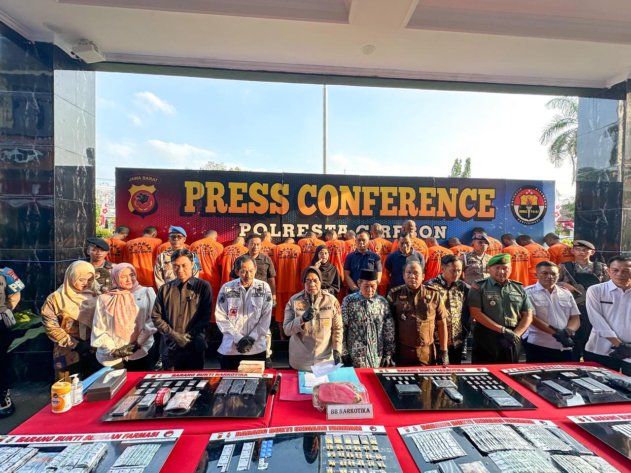 Kegiatan konferensi pers ini juga dihadiri oleh sejumlah pejabat dan tokoh daerah, antara lain Kasat Pol PP Kabupaten Cirebon, Kadishub, Kajari yang diwakili Kasi Pemulihan Aset dan Barbuk, Kasdim 0620, Ketua MUI, Kepala Dinas Kesehatan, Wakil Ketua DPRD, serta perwakilan Pengadilan Negeri Kabupaten Cirebon. Kehadiran lintas sektor ini menunjukkan sinergi yang kuat dalam mendukung upaya Polresta Cirebon memberantas narkoba hingga ke akar-akarnya.