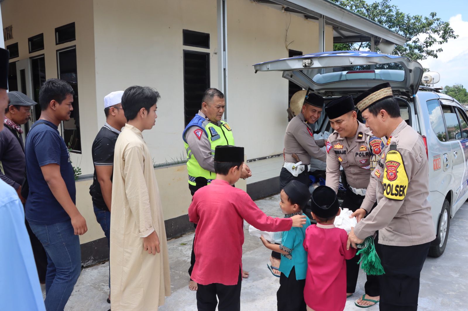 Kota Sukabumi – Polres Sukabumi Kota bersama-sama dengan Polsek Gunungpuyuh membagikan ratusan nasi kotak kepada masyarakat usai ibadah shalat Jum’at di masjid jami’ at-Taubah, Jalan Merbabu Kelurahan Karangtengah Kecamatan Gunungpuyuh Kota Sukabumi Jawa Barat, Jum’at (5/1/2024).