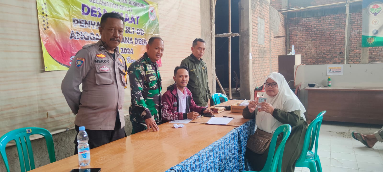 Kota Sukabumi – Cisaat– Bhabinkamtibmas Desa Cisaat Polsek Cisaat Polres Sukabumi Kota Aiptu Herdi Candra Melakukan pengamanan penyaluran bantuan langsung tunai dana desa bagi warga desa Cisaat Kecamatan Cisaat Kabupaten Sukabumi. Rabu (18/12/2024).