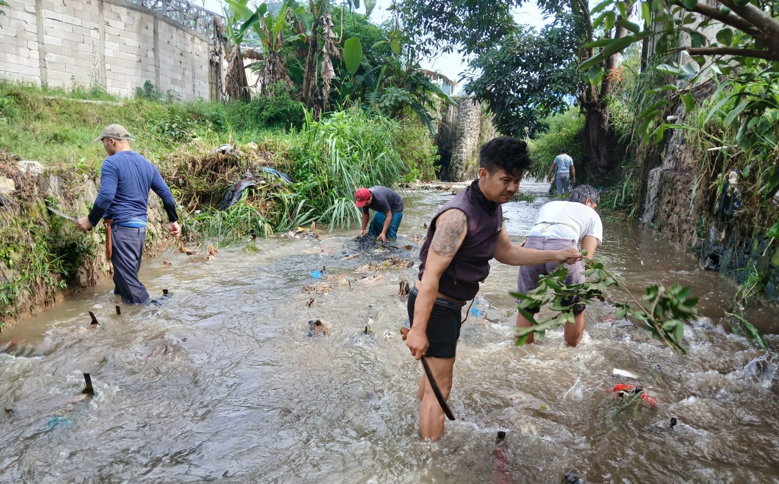 Untuk hari ini, sambung Rudi, kita bersihkan aliran sungai, terlebih sekarang musim hujan, jangan sampai ad sampah menumpuk yang sekiranya bakal menghambat arus air, dan bisa mengakibatkan banjir.