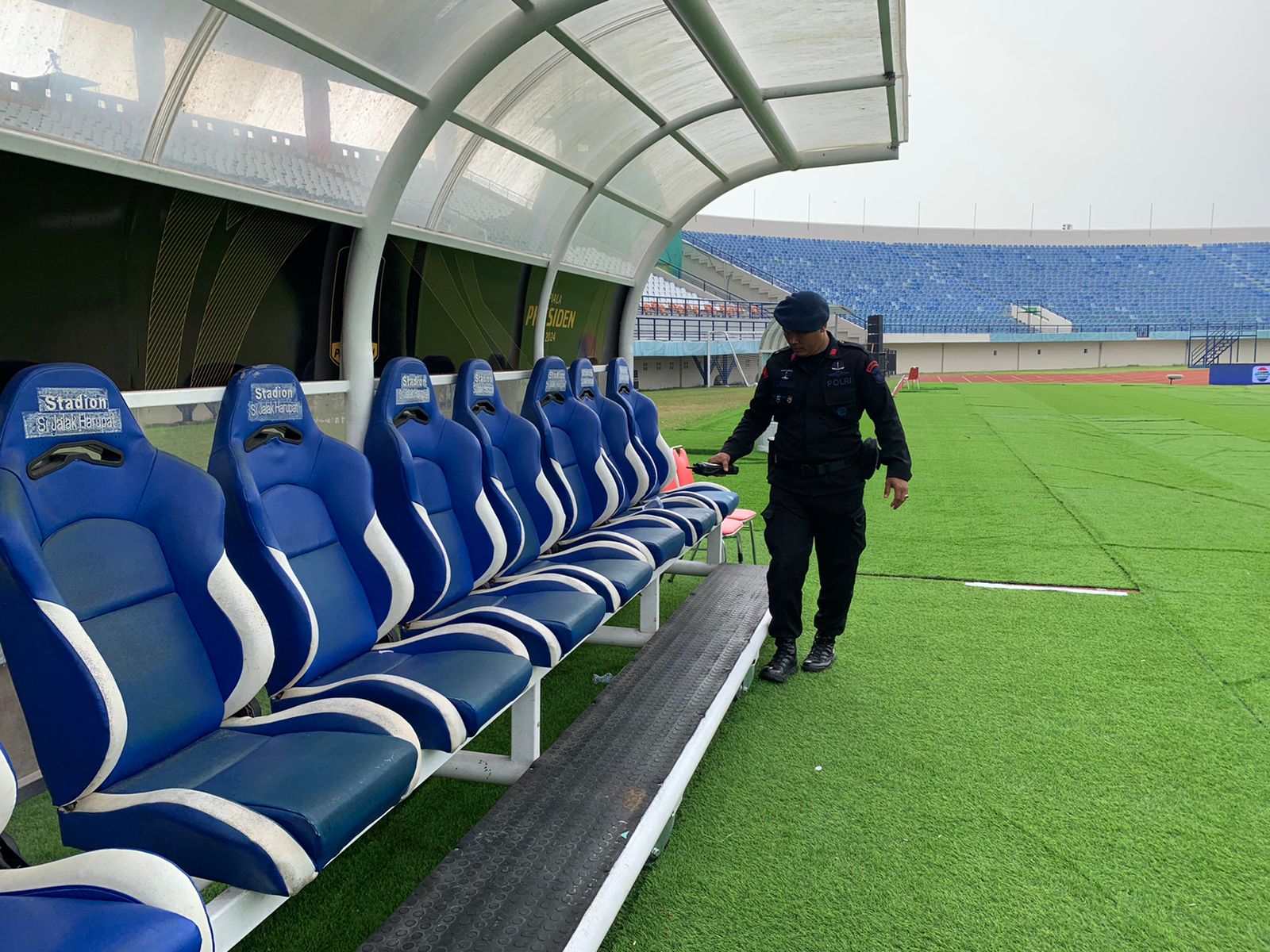 Anggota Detasemen Gegana Satbrimob Polda Jabar yang melaksanakan tugas BKO Polda Jabar dalam rangka Pengamanan Pertandingan sepakbola Piala Presiden melaksanakan Sterilisasi dan pengamanan di Sijalak Harupat Kabupaten Bandung, pelaksanaan pengamanan dan sterilisasi dilaksanakan oleh anggota Detasemen Gegana untuk memberikan rasa aman dan nyaman selama pelaksanaan pertandingan. Semua perlengkapan dan peralatan canggih dibawa untuk memastikan bahwa kegiatan berjalan dengan lancar.