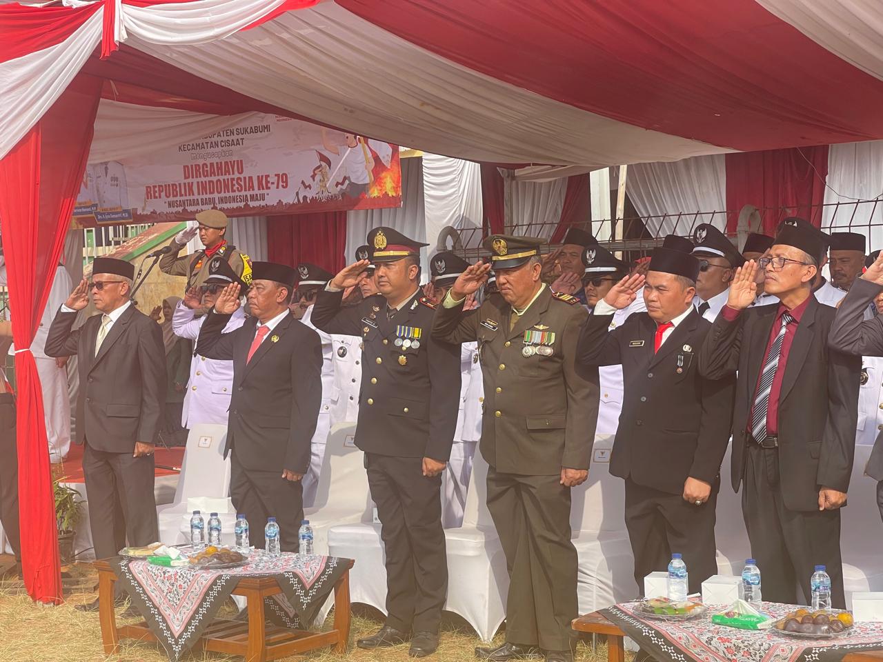 Kota Sukabumi – Sabtu tanggal 17 Agustus 2024,Telah berlangsung Upacara Peringatan Hari Ulang Tahun Proklamasi Kemerdekaan Republik Indonesia Ke-79 tahun 2024 tingkat Kecamatan Cisaat bertempat di Lapangan Korpri Cisaat Kabupaten Sukabumi.Sabtu (17/8/2024).